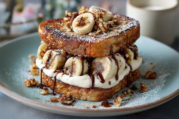 Sanfte Mascarpone | Goldener Ahornsirup | Karamellisierte Banane | Frische Erdbeeren | 12,5 | |